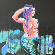 This small painting was part of the Clarence Impressions Exhibition recently and has now sold. This little mermaid painting has a mosaic tail just like the real one that sits at the end of the boat harbour.