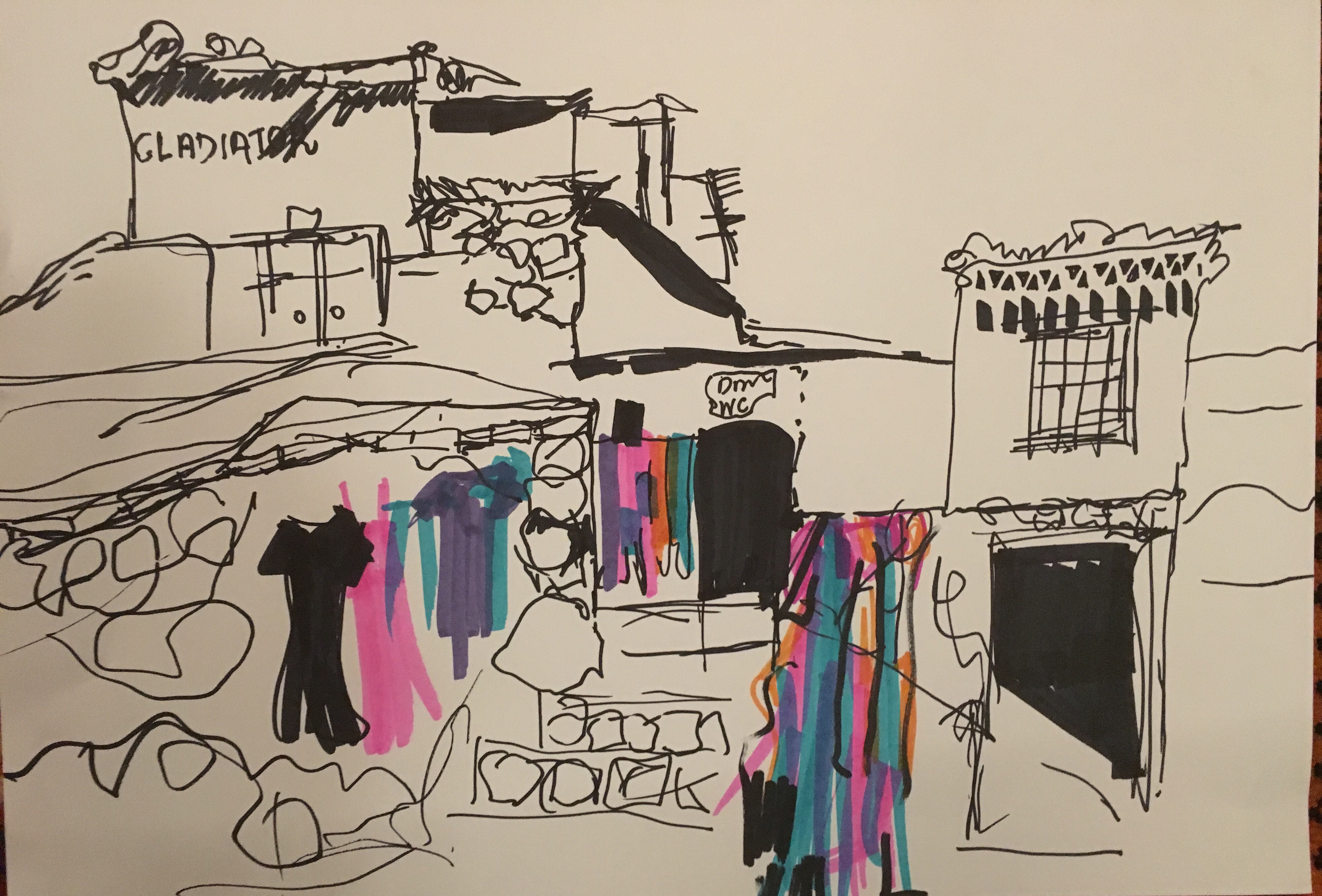 You will see further examples of my work using gouache, pens and pastels painting and drawing from life as we toured some wonderfully exotic locations. I will add a few photos of subjects I didn’t have time to paint.
