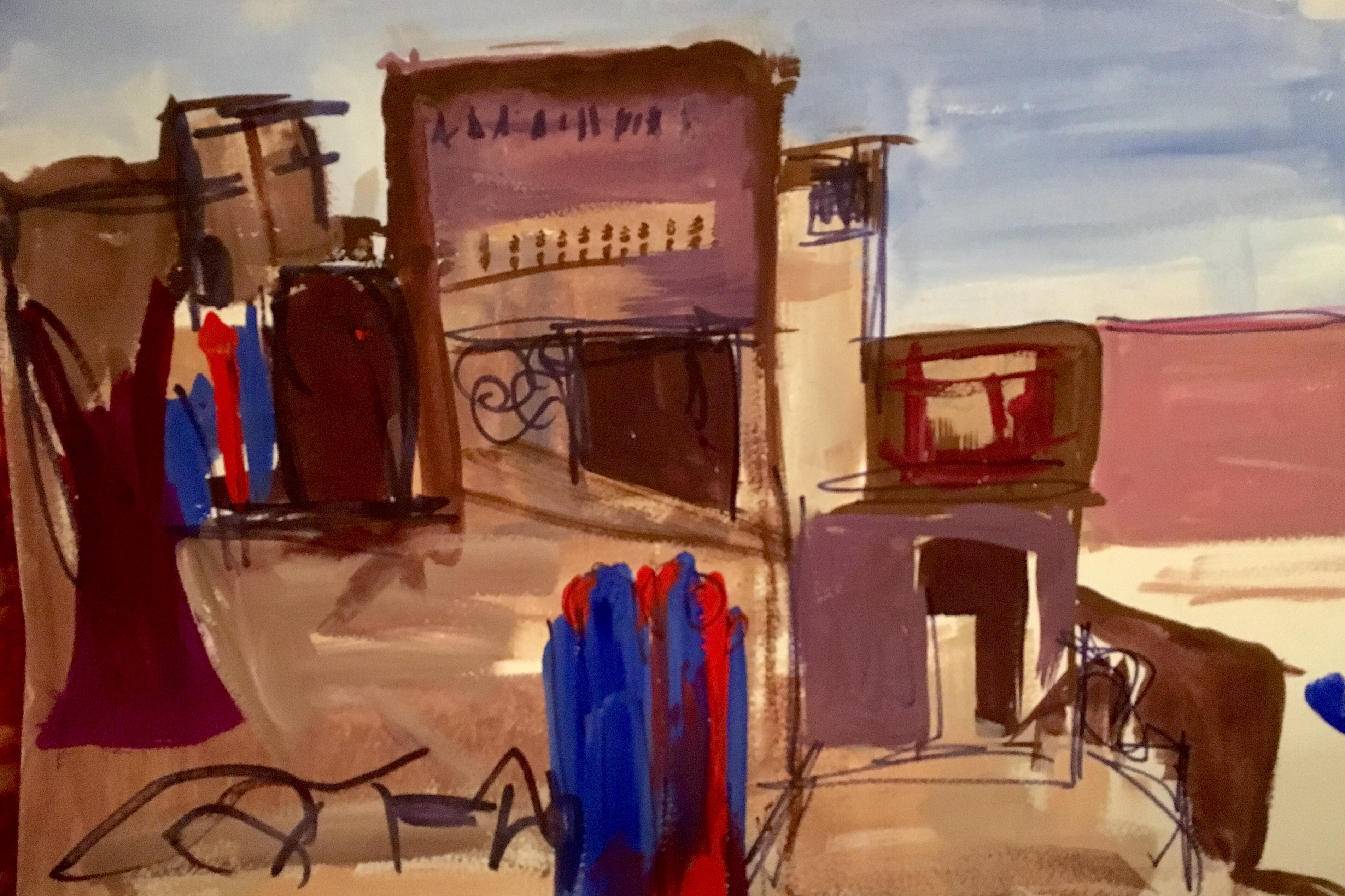 I flew to Marrakech to join a small group of like minded souls lead by Australian artist Wendy Sharpe. Gouache is a new medium for me and I experimented with it for the first time painting from a model dressed in traditional clothes in Skoura, Atlas Mountains.