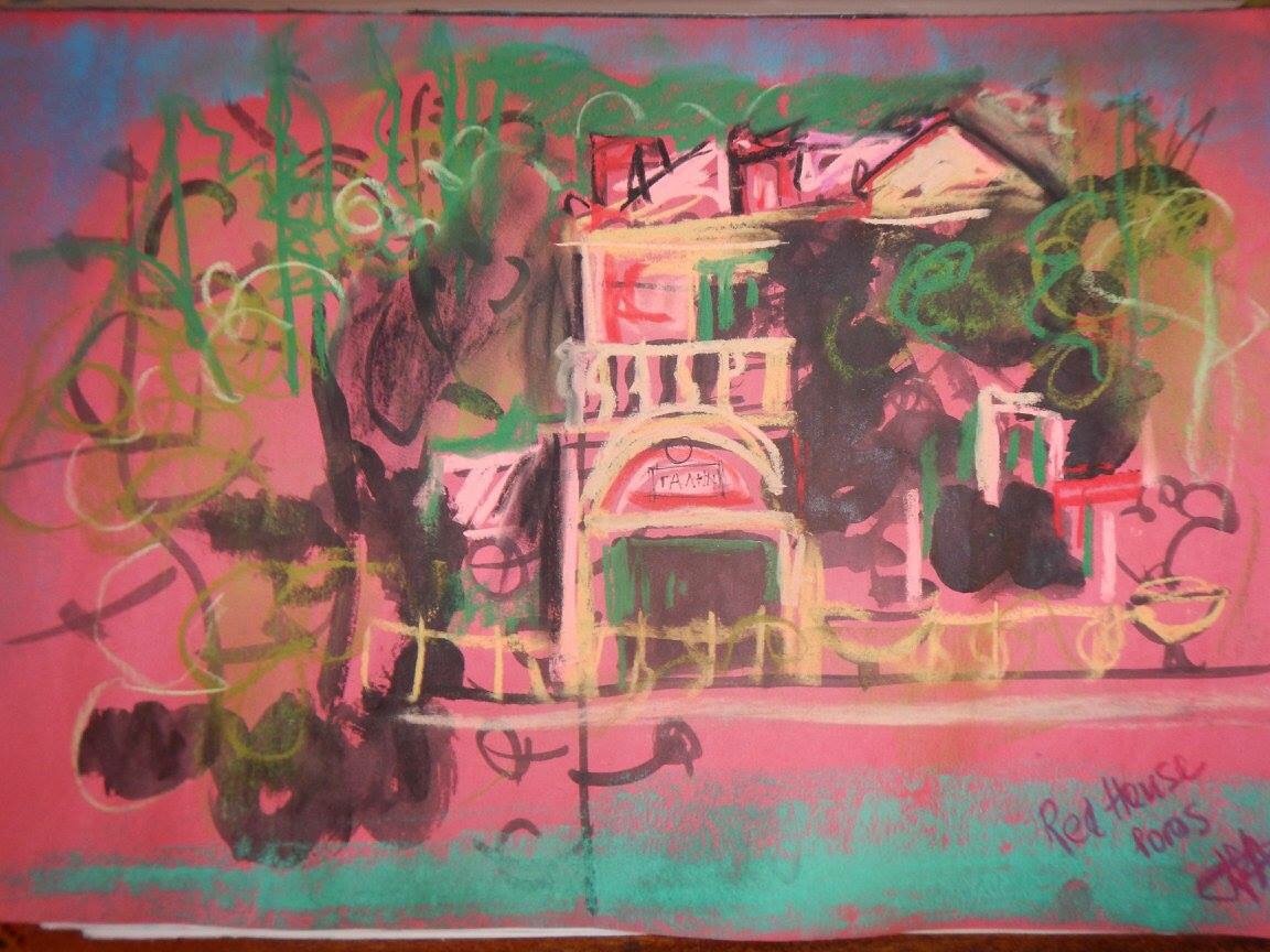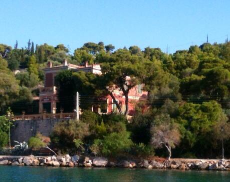I have very fond memories of our last anchorage on board Lati in Poros, Greece in 2014. From our cockpit we could see a beautiful old building of red bricks ‘Villa Galini’ which I found out was used by artists and playwrights many years ago. Marc Chagall was one who painted from under its eaves. I painted and drew this building using a small table top easel outside in the cockpit of the boat.