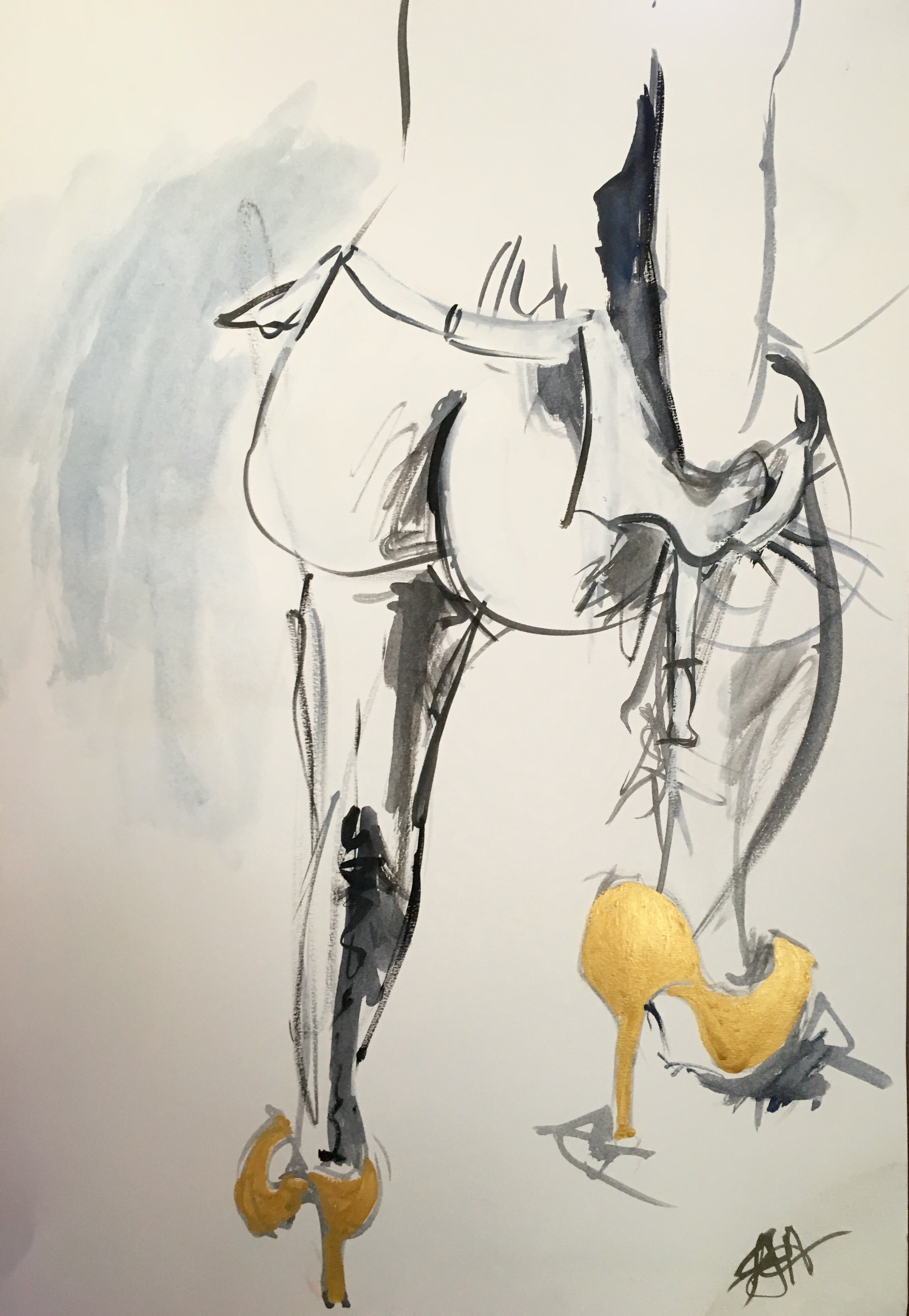 ‘The Gold Shoes’ painted from life. Gouache on water colour paper