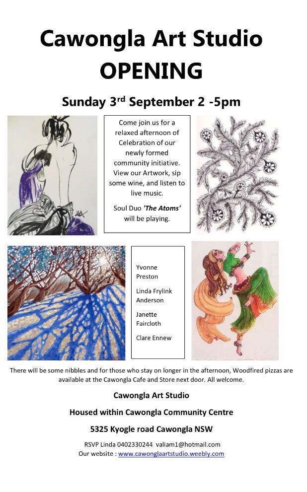 I’m absolutely thrilled to be part of a local collective of Artists, exhibiting and celebrating our work this Sunday 3rd September. If you are in the northern rivers area this weekend come on by for a lovely afternoon of local Art, live music ( Soul Duo The Atoms), wine, beer and nibblies. All on us. Hope to see you! Linda, Yvonne, Janette and Clare. Phone 0402330244