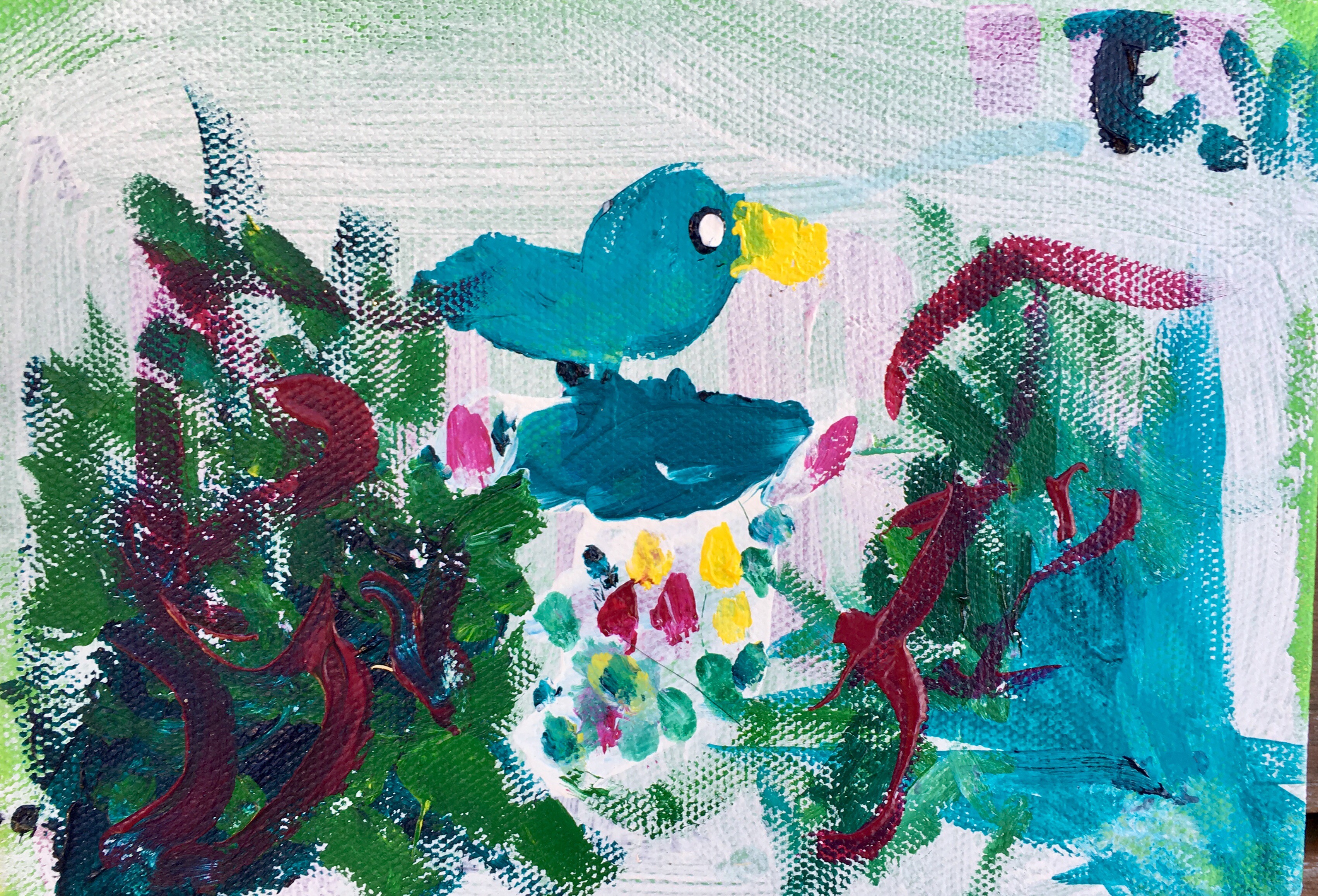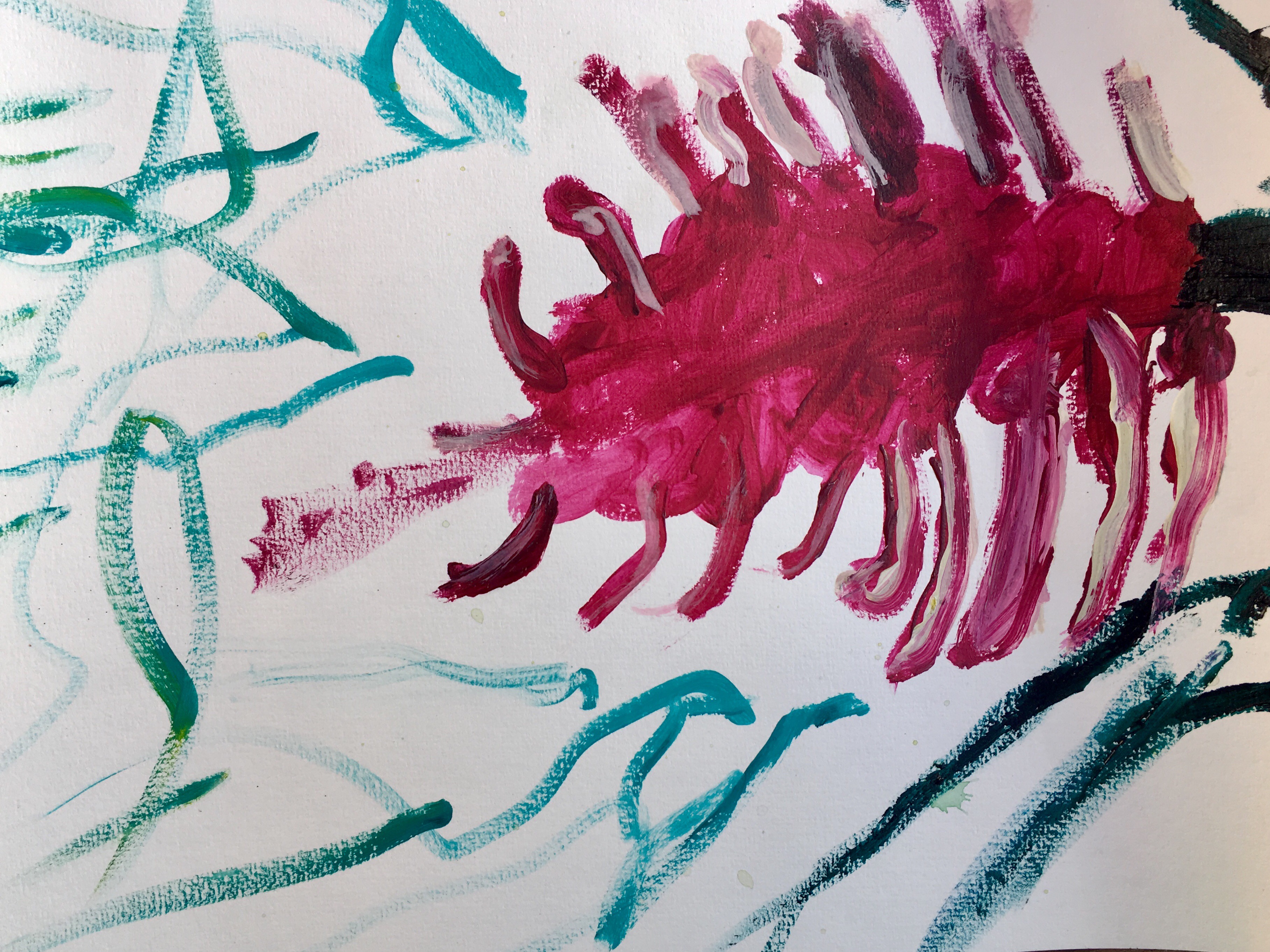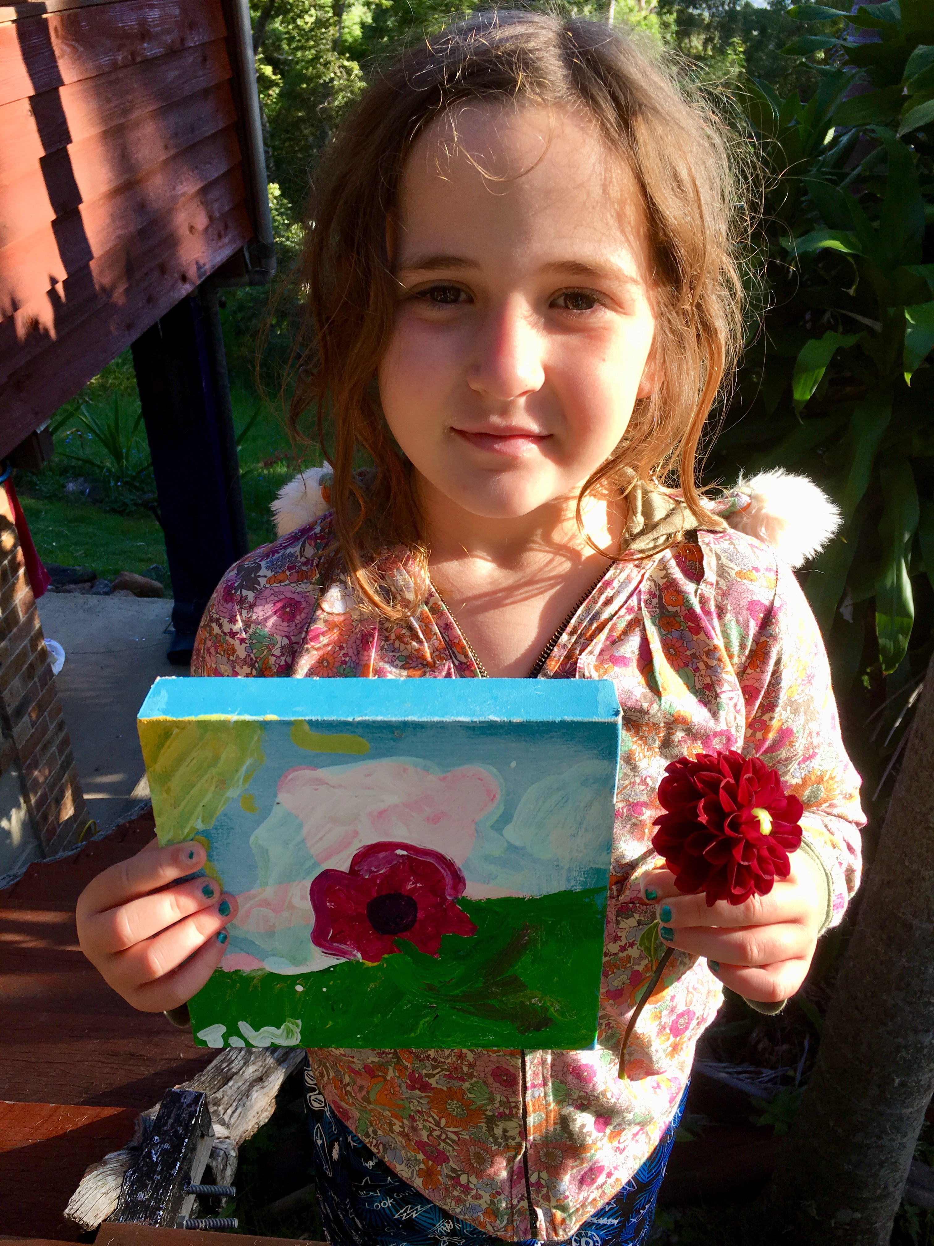 Joe aged 10 and Tahlia 7 came to visit us in our home in the bush. I encouraged them to observe the garden and choose something they wanted to paint. They observed and painted their interpretations. The canvases were small so I gave them small brushes to use. Children’s art is always so inspirational to me. Give them good materials and allow them to explore.
