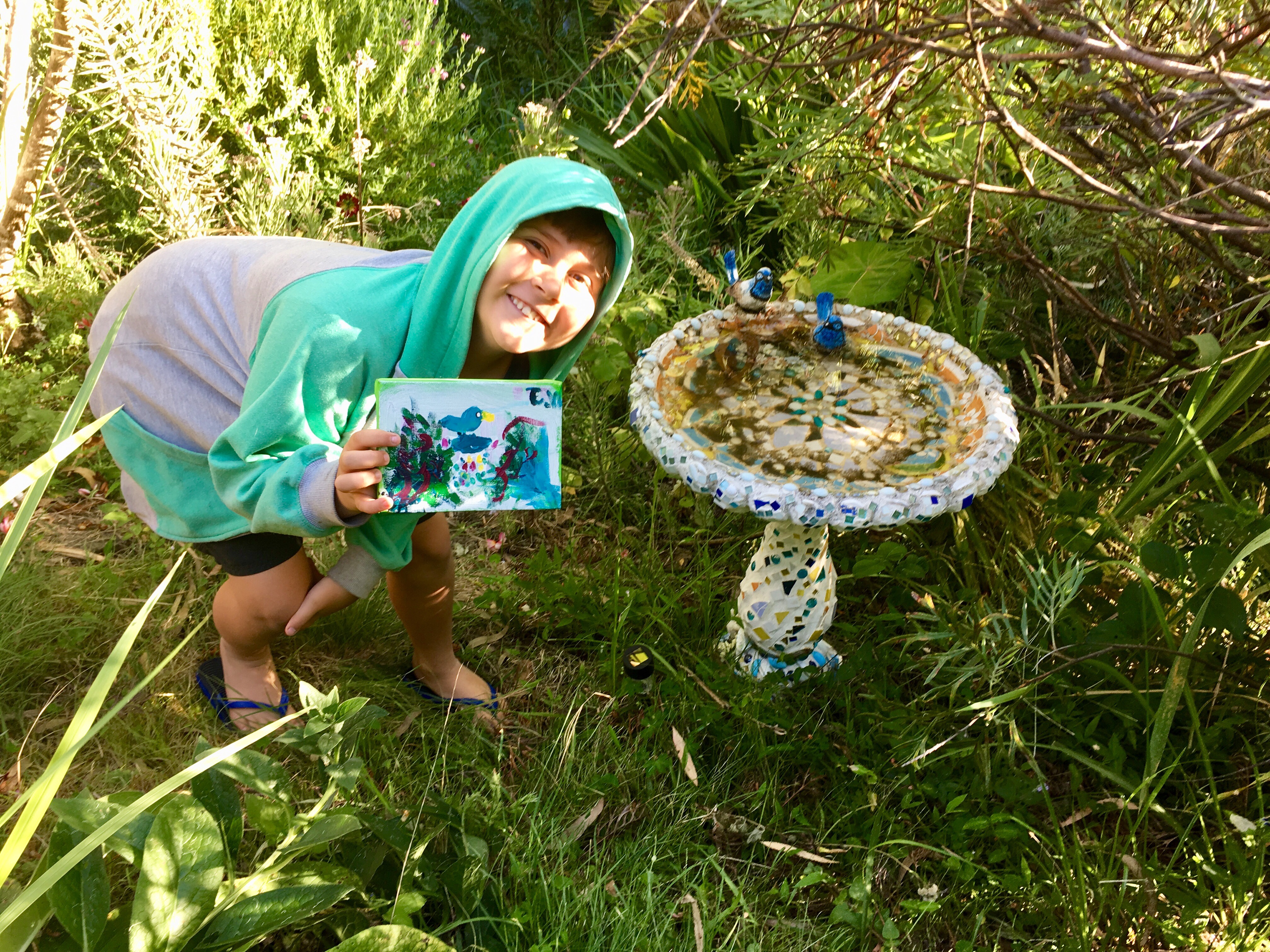 Joe aged 10 and Tahlia 7 came to visit us in our home in the bush. I encouraged them to observe the garden and choose something they wanted to paint. They observed and painted their interpretations. The canvases were small so I gave them small brushes to use. Children’s art is always so inspirational to me. Give them good materials and allow them to explore.