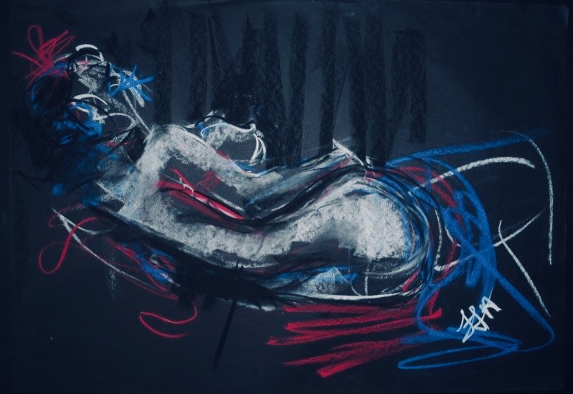 One of my favourite Nudes, a pastel on black paper is on exhibition at Blue Knob Gallery near Nimbin, NSW hinterland. The poem I chose for this drawing is one by Stevie Tate –