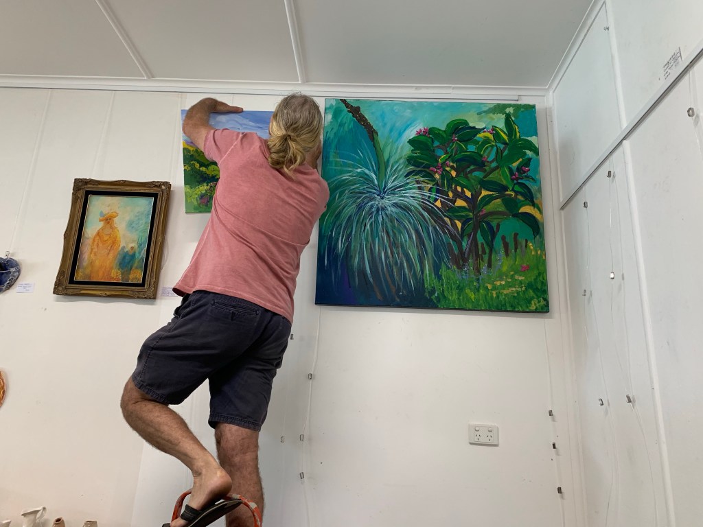 Friday 13th was the day. Thanks to my husband Bill for hanging my work due to my temporary disability of a broken leg! Thank you to friends who popped in to take a look and enjoy a glass of wine.