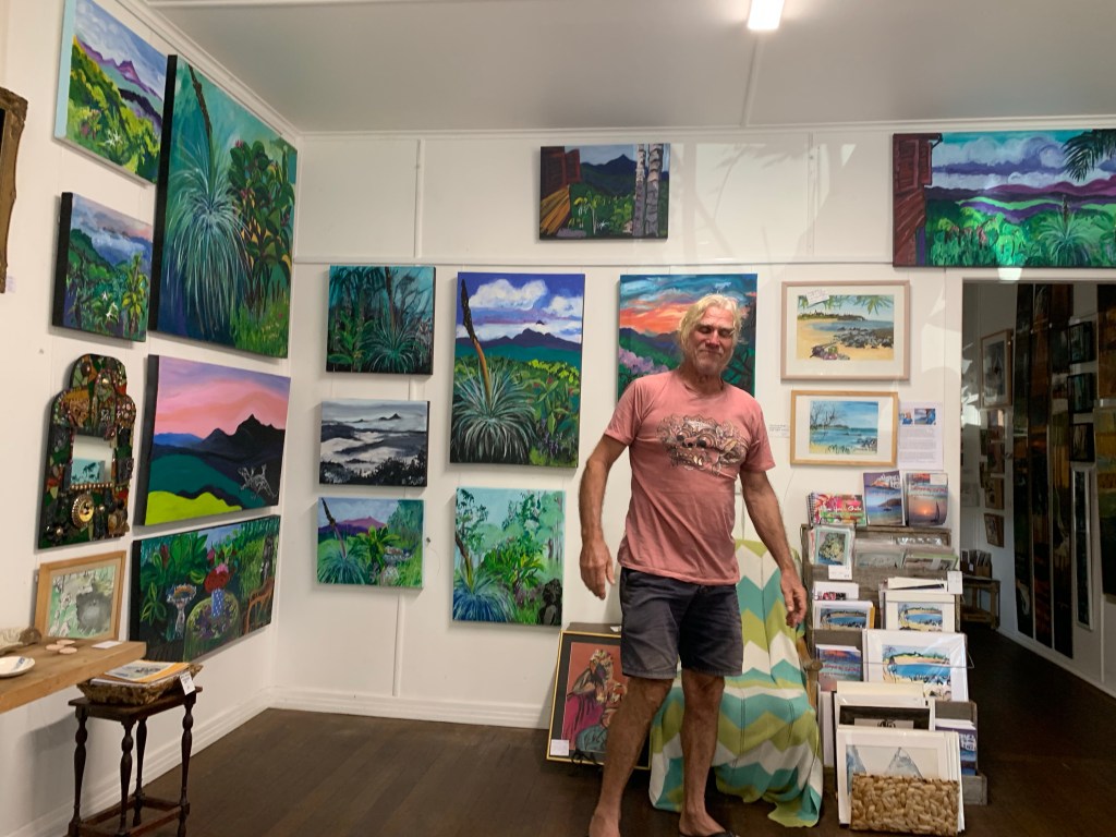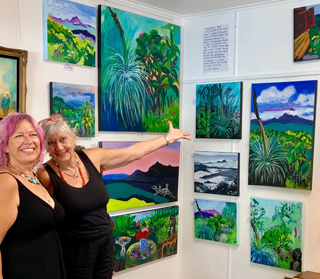 “‘Celebrating Green’ is my response to the recent rains in northern NSW after months of severe drought and catastrophic bushfires. My garden and surrounding bushland is green and lush once more and the wildlife are once again daily visitors. I paint from my back verandah from life, what I see and feel spontaneously playing with colour and line. Mt Wollumbin is a prominent feature, sometimes hidden by cloud but always mesmerising.”