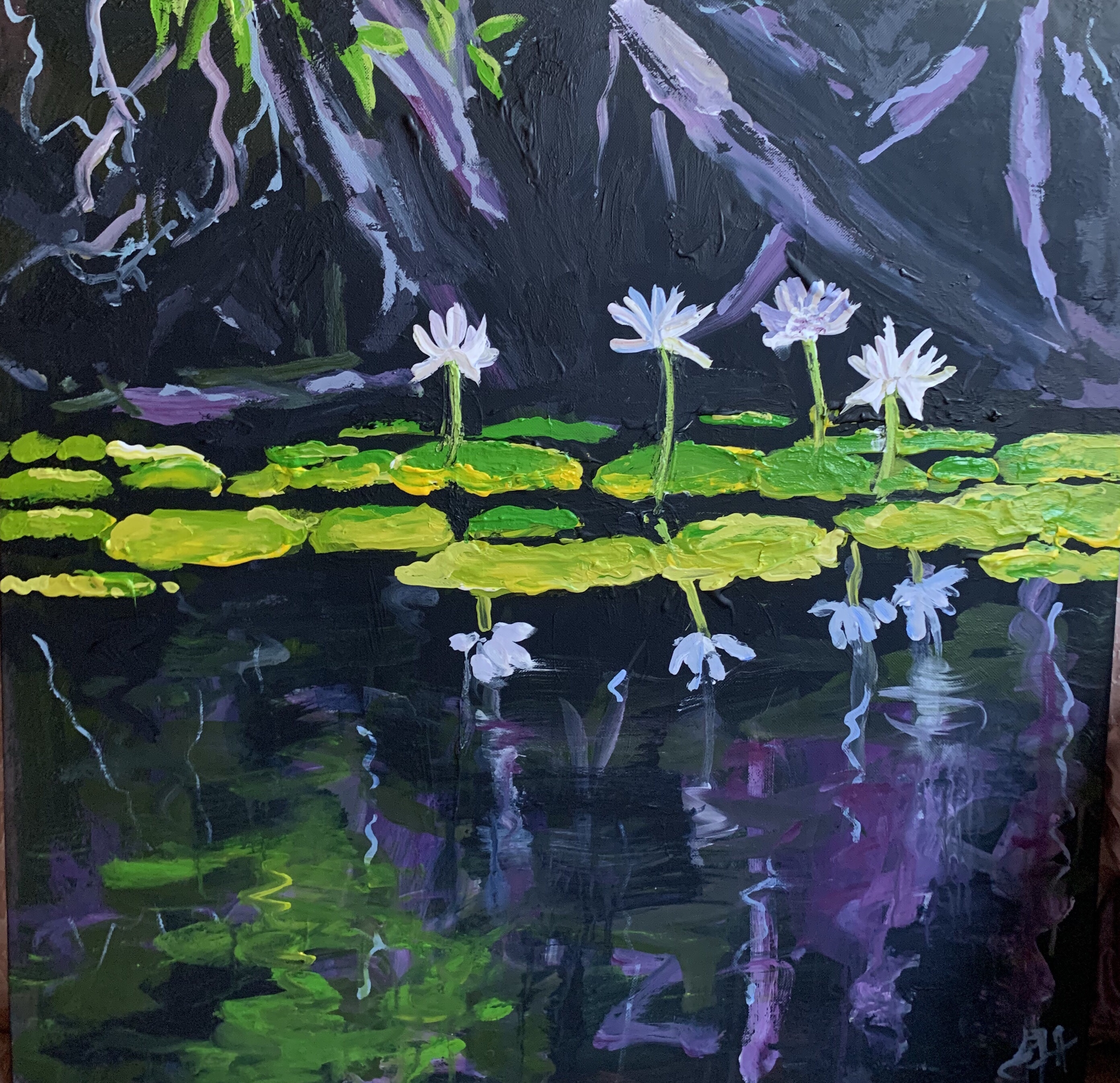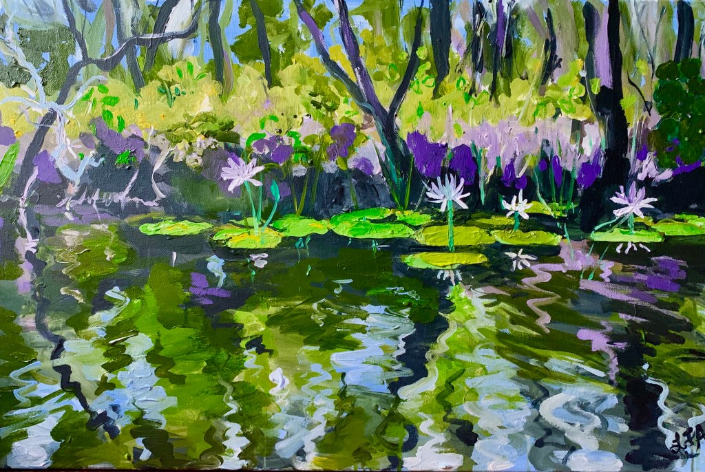The first ‘Waterlilies on the Esk river ‘ painting was exhibited at Coldstream Gallery as part of the ‘Our Clarence’ exhibition (Plunge Festival)