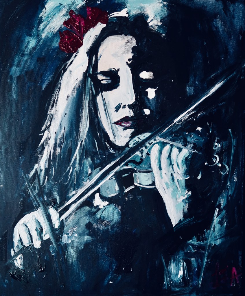 Recent portraits of my daughter a violinist and my model with a blue wig