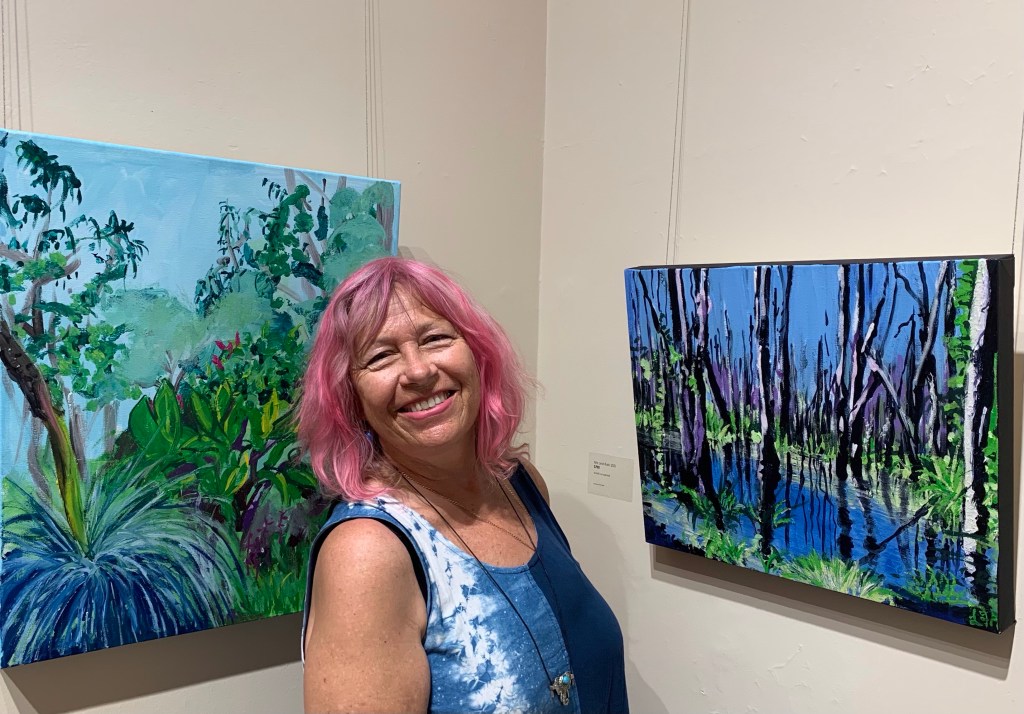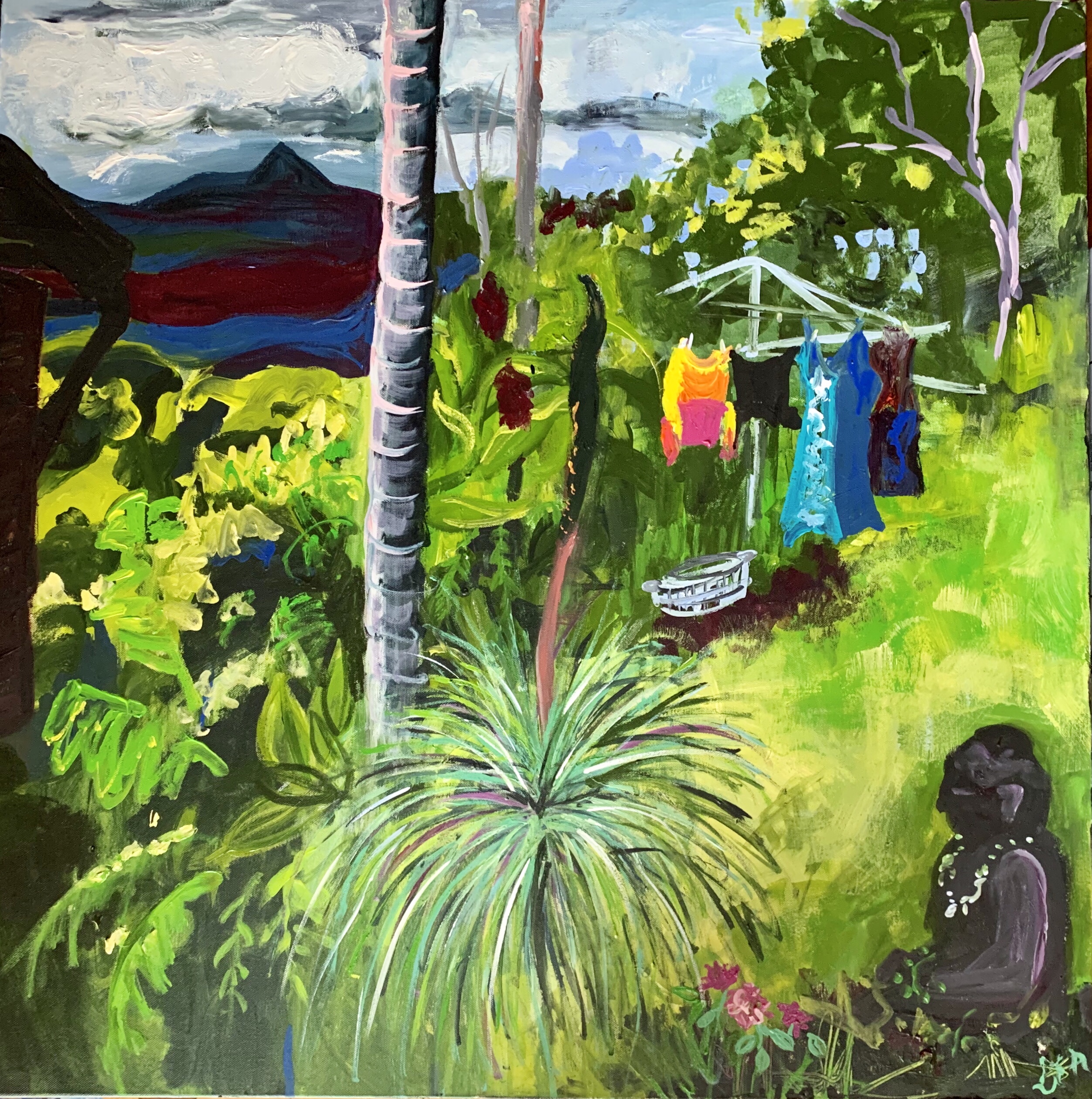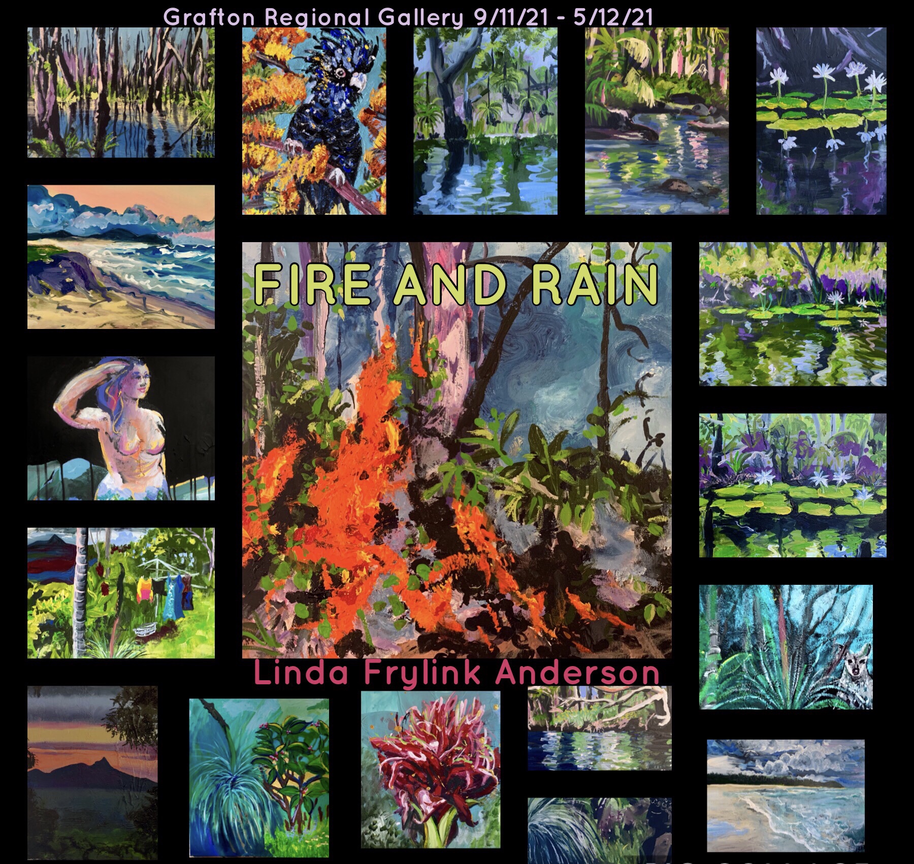 ‘Fire and Rain’ is Frylink Anderson’s most recent body of work, painted from her bush studio overlooking Mt Wollumbin. Using an abundance of colour, Frylink Anderson applies paint thickly, in a joyous, unrestrained manner, a process she describes as “messy and fun.” Paying homage to the natural abundance that surrounds us, these works acknowledge the devastation caused by fire. While the destructive force of these natural disasters will be forever etched in our memories, Frylink Anderson’s work looks optimistically towards the recovery of the landscape, highlighting a collective feeling of hope. Her vibrant works celebrate the lushness and emergence of new life after rain.