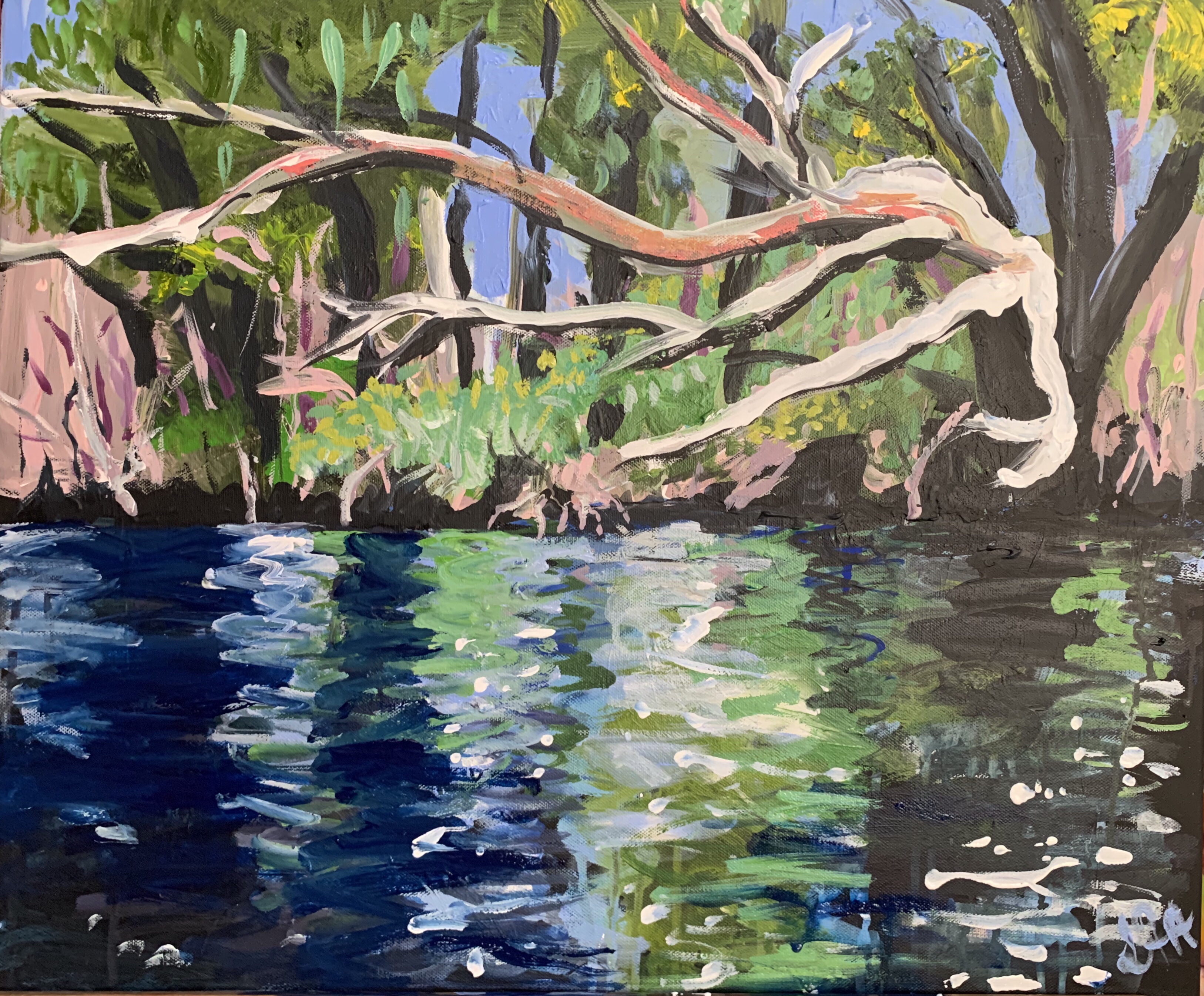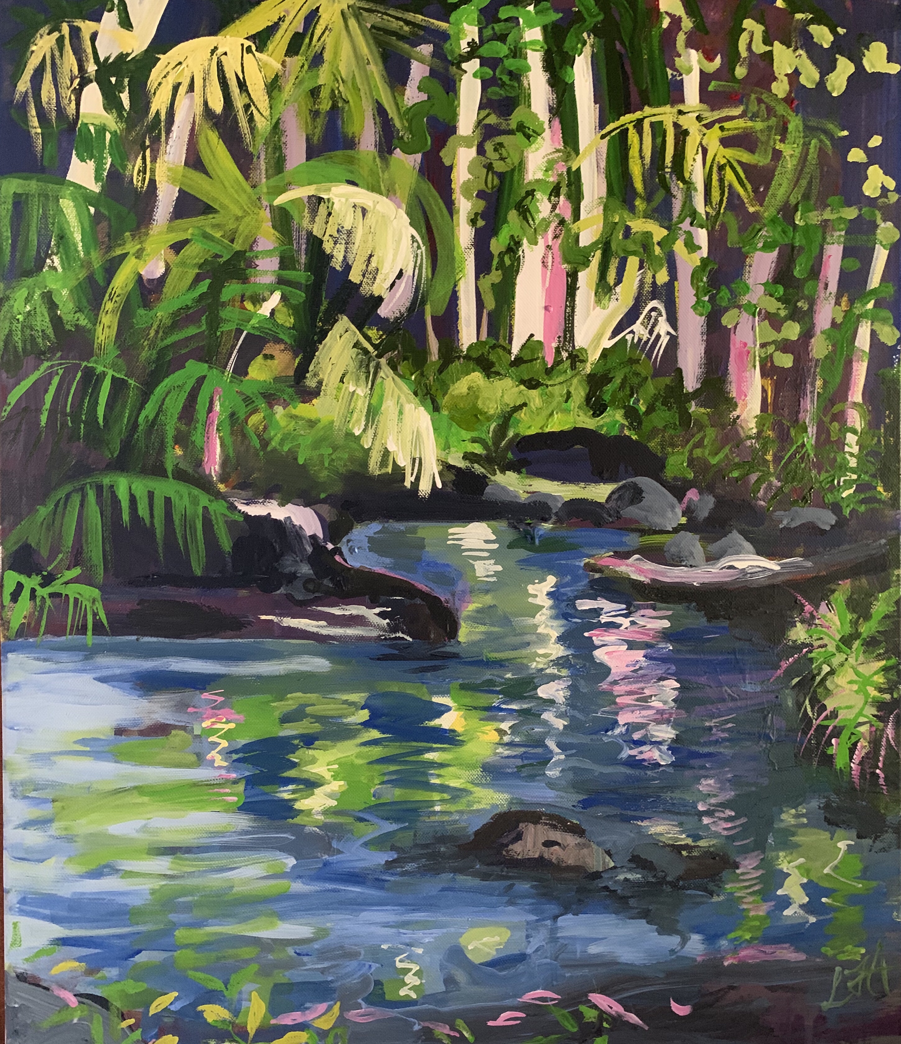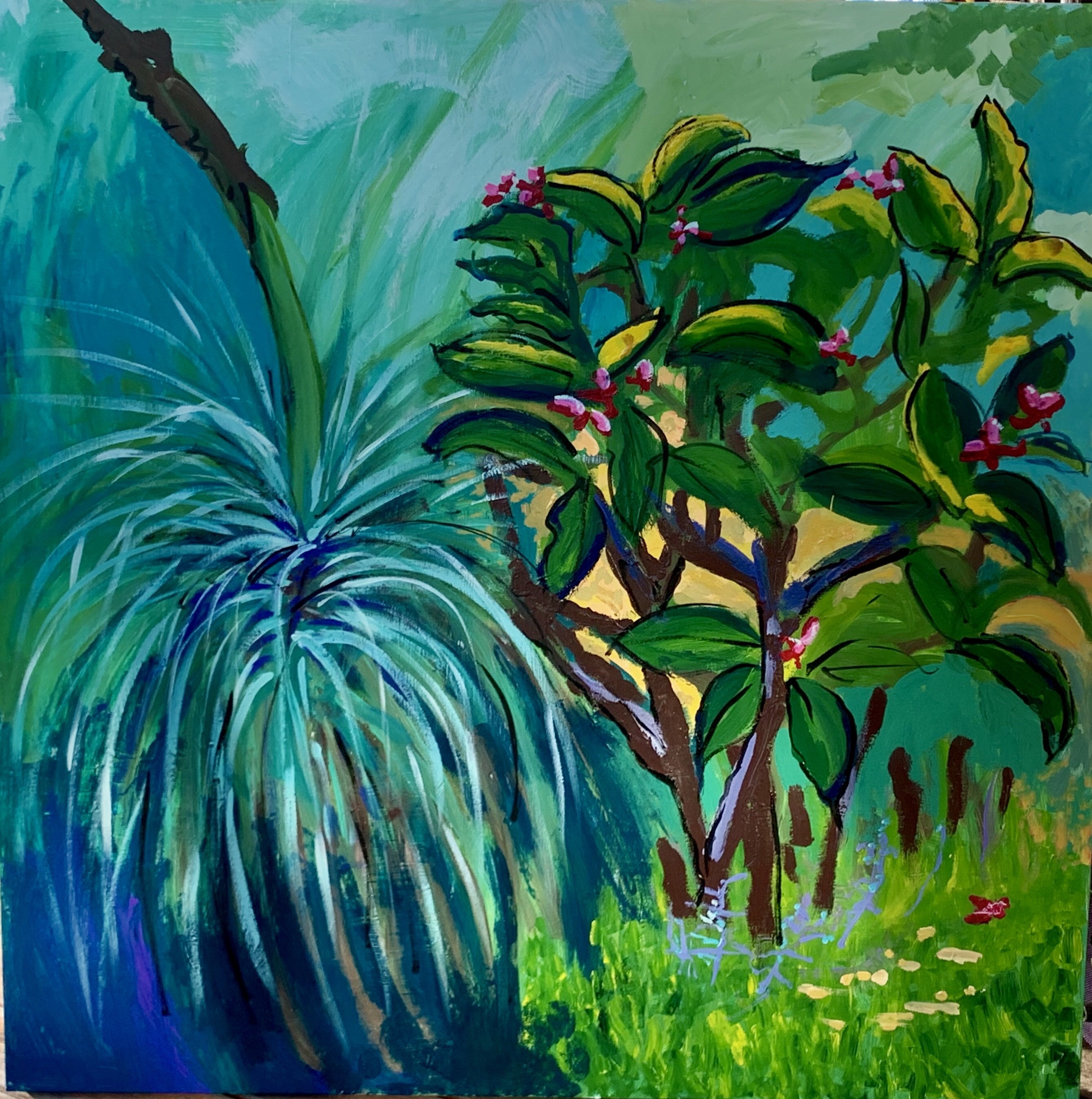 ‘Fire and Rain’ is Frylink Anderson’s most recent body of work, painted from her bush studio overlooking Mt Wollumbin. Using an abundance of colour, Frylink Anderson applies paint thickly, in a joyous, unrestrained manner, a process she describes as “messy and fun.” Paying homage to the natural abundance that surrounds us, these works acknowledge the devastation caused by fire. While the destructive force of these natural disasters will be forever etched in our memories, Frylink Anderson’s work looks optimistically towards the recovery of the landscape, highlighting a collective feeling of hope. Her vibrant works celebrate the lushness and emergence of new life after rain.