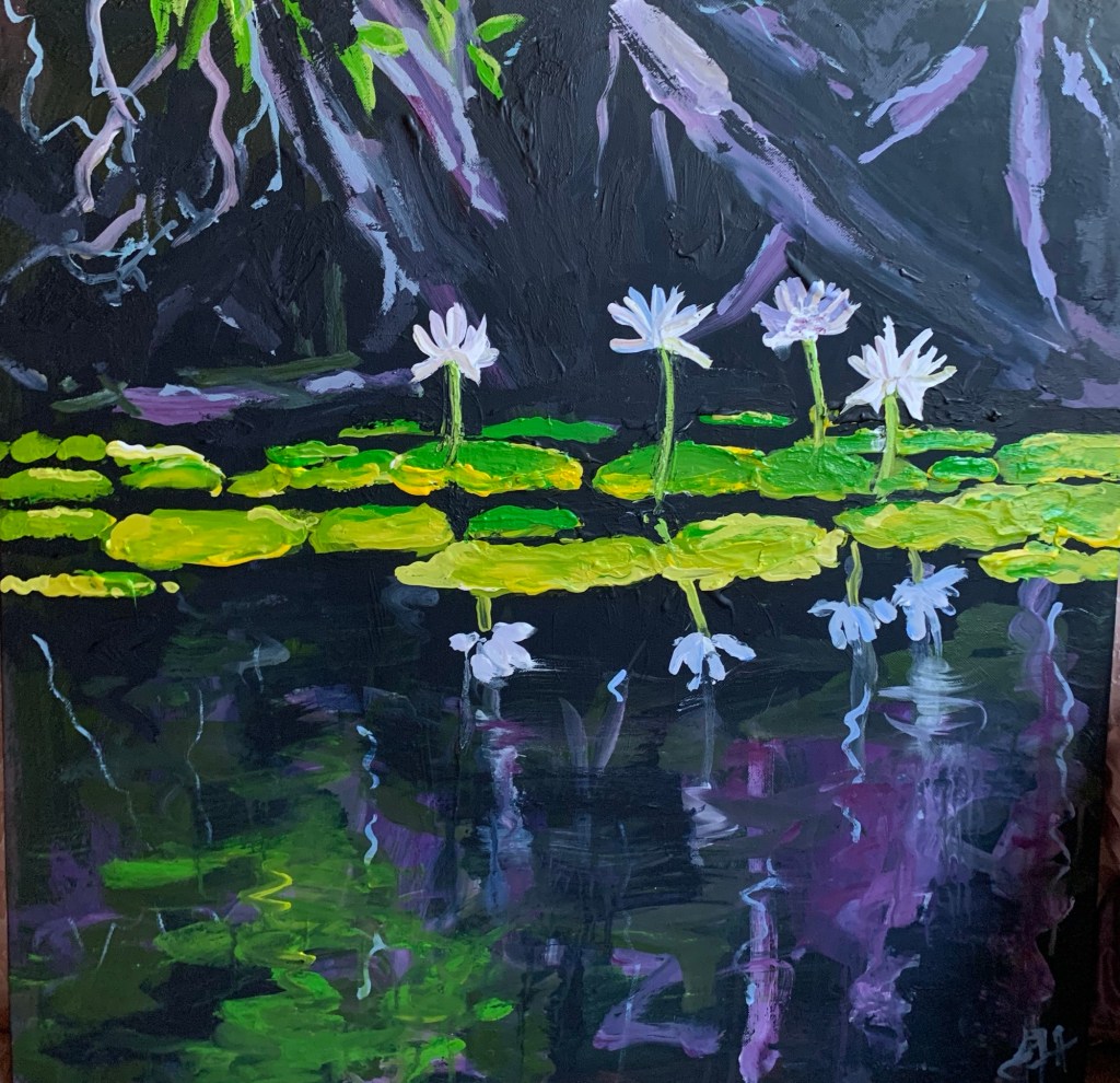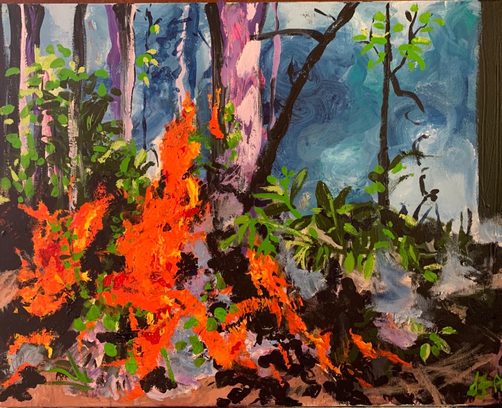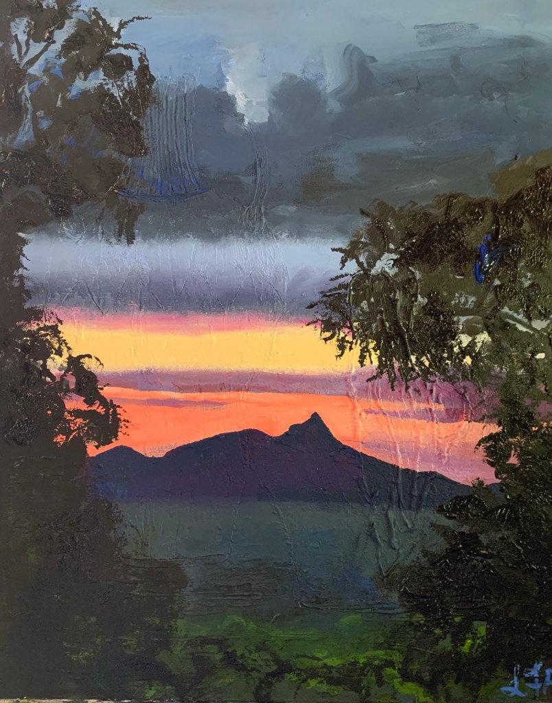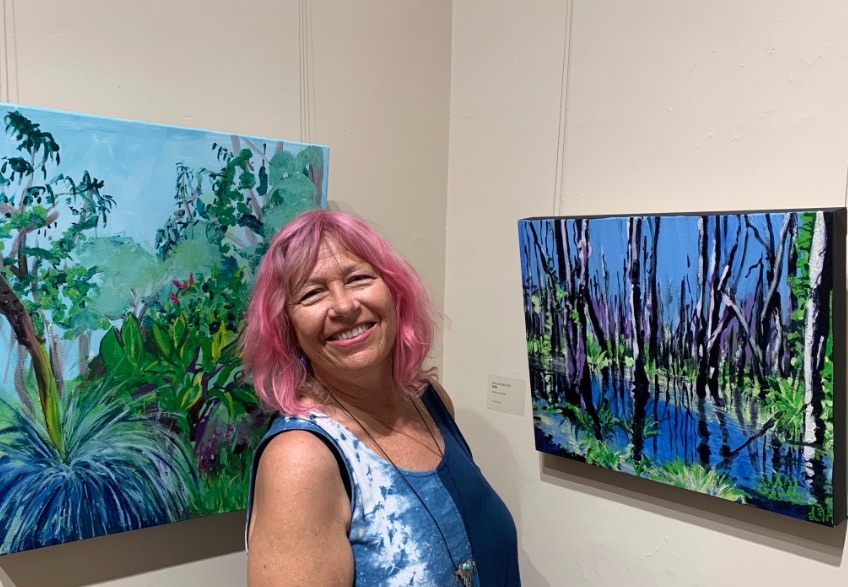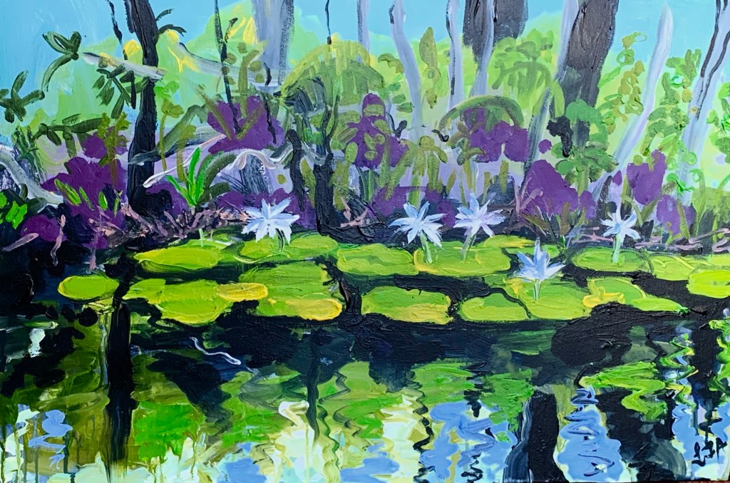 ‘Fire and Rain’ is Frylink Anderson’s most recent body of work, painted from her bush studio overlooking Mt Wollumbin. Using an abundance of colour, Frylink Anderson applies paint thickly, in a joyous, unrestrained manner, a process she describes as “messy and fun.” Paying homage to the natural abundance that surrounds us, these works acknowledge the devastation caused by fire. While the destructive force of these natural disasters will be forever etched in our memories, Frylink Anderson’s work looks optimistically towards the recovery of the landscape, highlighting a collective feeling of hope. Her vibrant works celebrate the lushness and emergence of new life after rain.