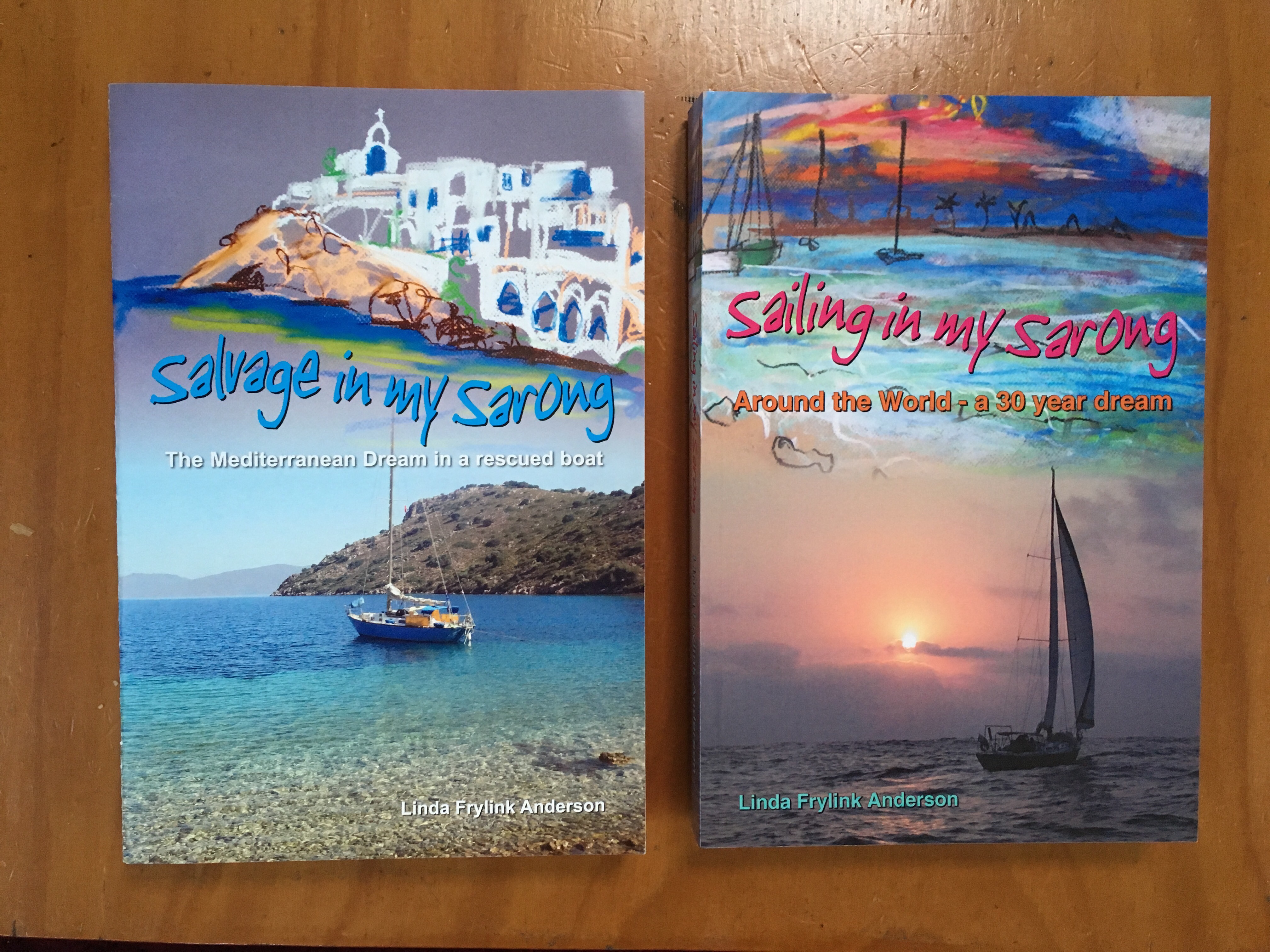 Linda set sail to circumnavigate the world with Bill aka ‘Captain Underpants’ aboard a boat built in their backyard. Armed with her satellite phone and laptop, Linda could write her blog anywhere in the world. Enjoying her tales, readers of Linda’s blog encouraged her to write a book. Linda published her first memoir ‘Sailing in my Sarong, Around the World – a 30-year dream’ colourfully illustrated with her original art and photography. This was followed by her second colourfully illustrated book ‘Salvage in my Sarong – the Mediterranean Dream in a rescued boat’